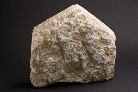 Dorso sólo desbastado. Los costados y el fastigium son lisos, sobre todo en los primeros 1,5 cm desde el borde frontal que recibieron un tratamiento más esmerado, lo que sugeriría que la aedicula se empotró en un muro o en un monumento mayor de mampostería.